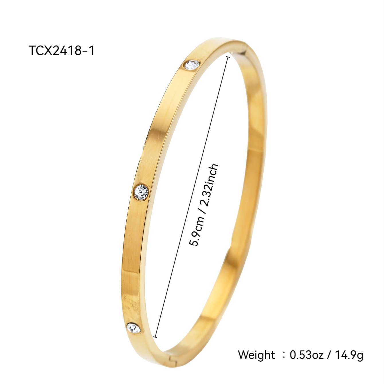 Elegante Moda Lujo Alta Gama Pulsera de Mujer con Cerradura de Llave Patrón Geométrico Incrustado de Zirconia Acero Inoxidable Chapado en Oro de 18k Todas las Estaciones